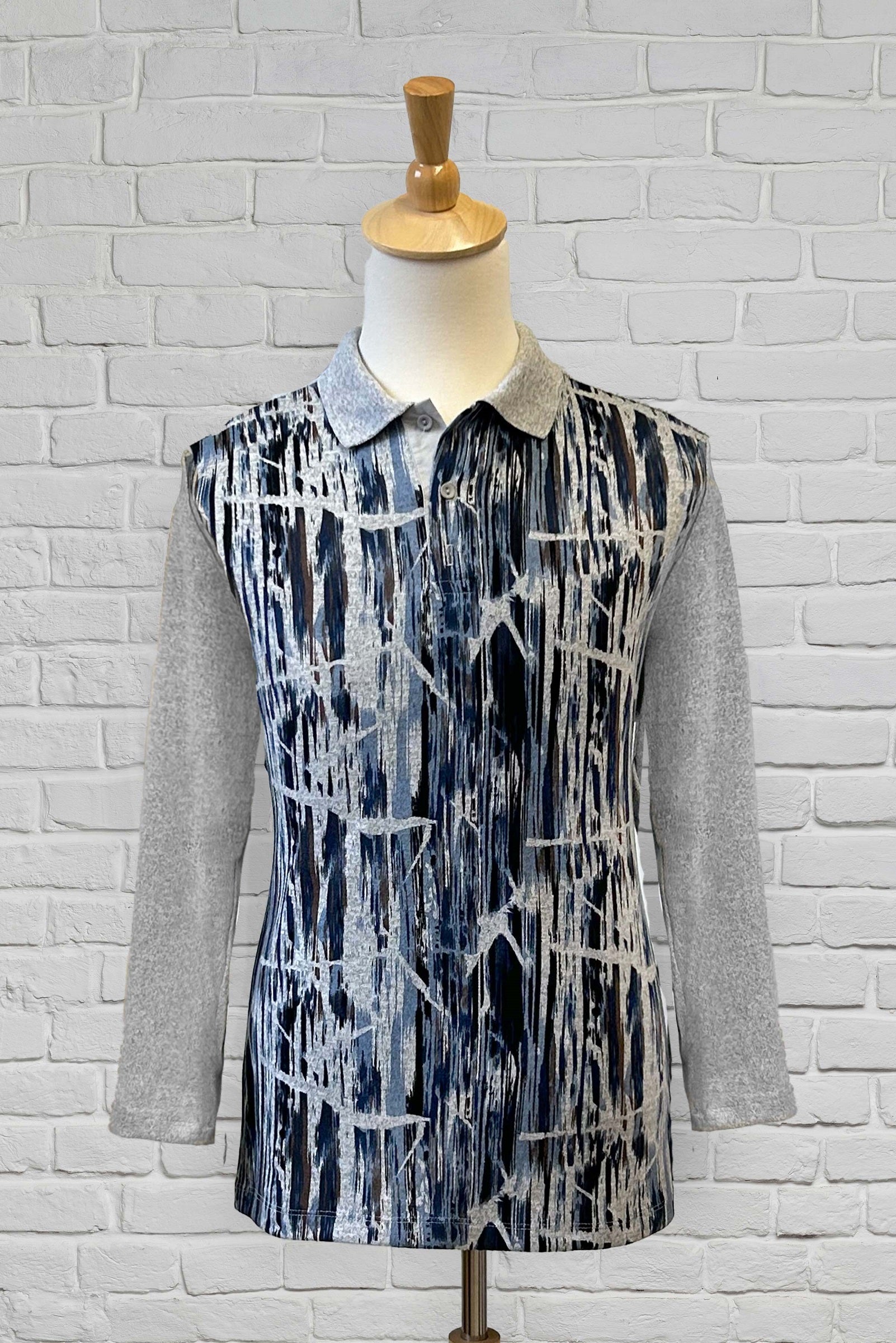 Stay comfortable with our polo, featuring contrasting colors and patterns. This long-sleeved polo is perfect for any occasion and is made with soft and durable polyester knit. So why compromise on comfort or style when you can have both? This product is designed for people with reduced mobility. You can put it on without having to leave your bed or wheelchair. Polyester and spandex blend.