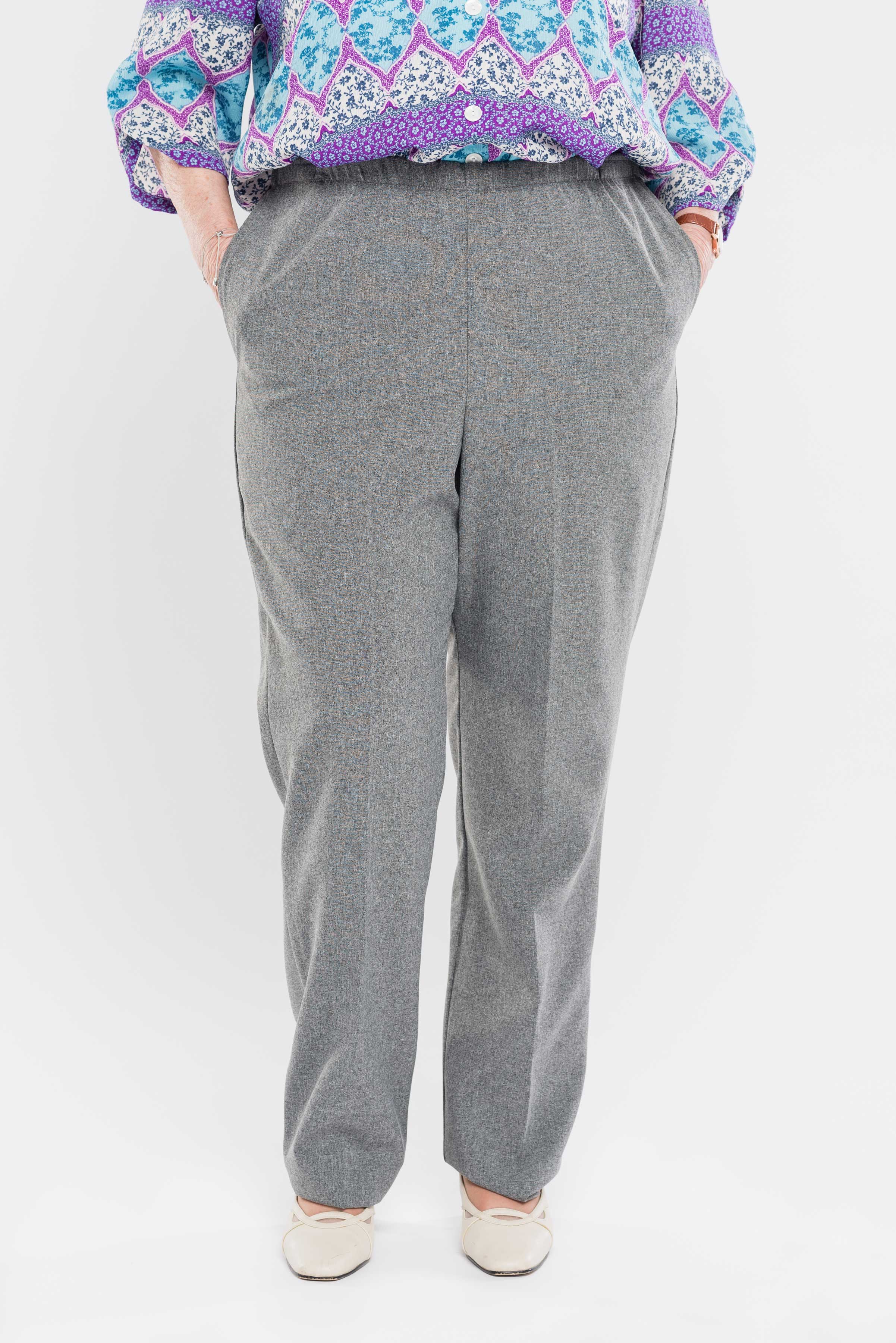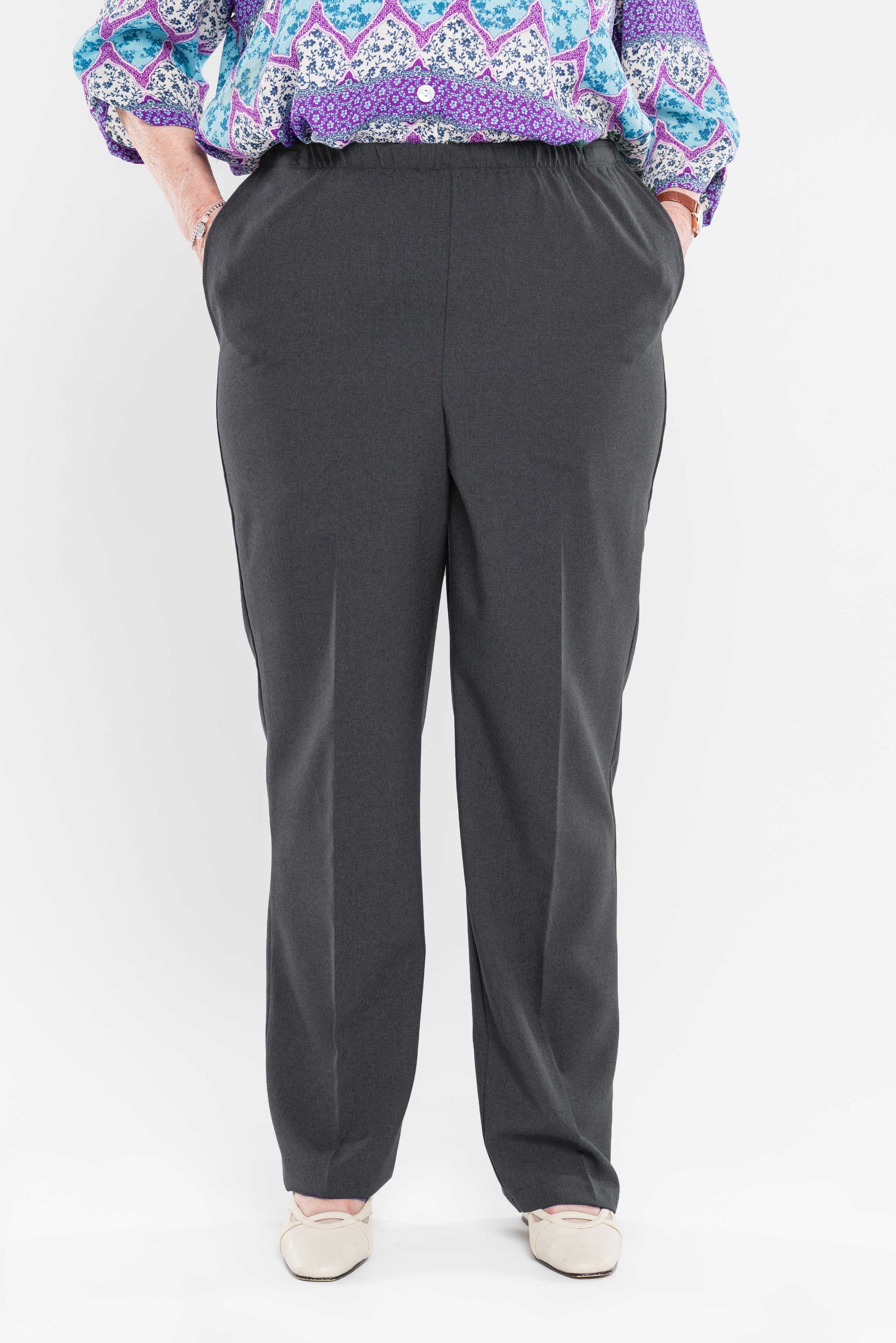 Stay comfortable and stylish with our side-opening pants. Our pants feature convenient side openings with snap closures. Made from machine-washable gabardine polyester, they also have an attractive heathered tone. Perfect for everyday wear! This product is designed for people with reduced mobility. You can put it on without having to leave your bed or wheelchair. 100% polyester.
