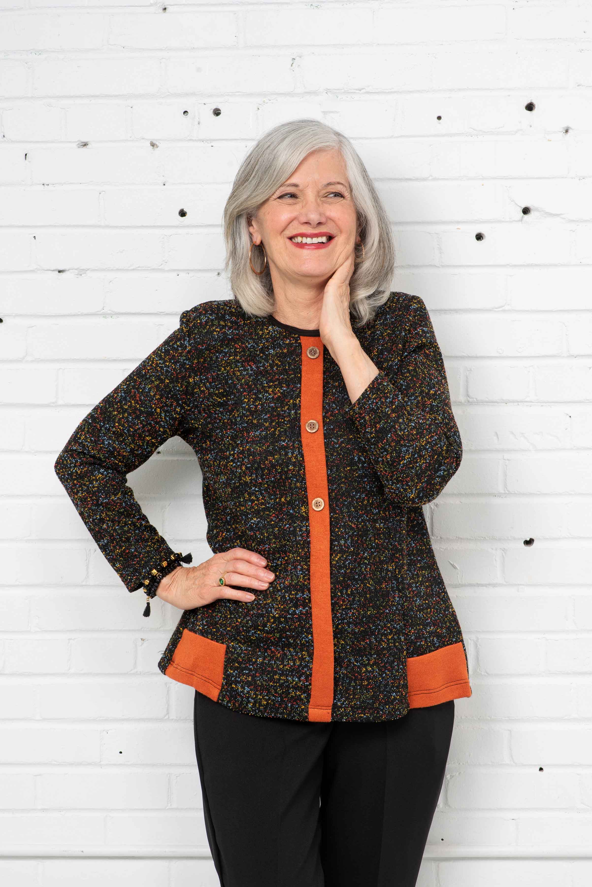 Ce classique est une valeur clé pour toute garde-robe. Encolure ronde, faux boutonnage, manches longues et coupe princesse. Disponible en tricot dans un polyester doux et chaud.