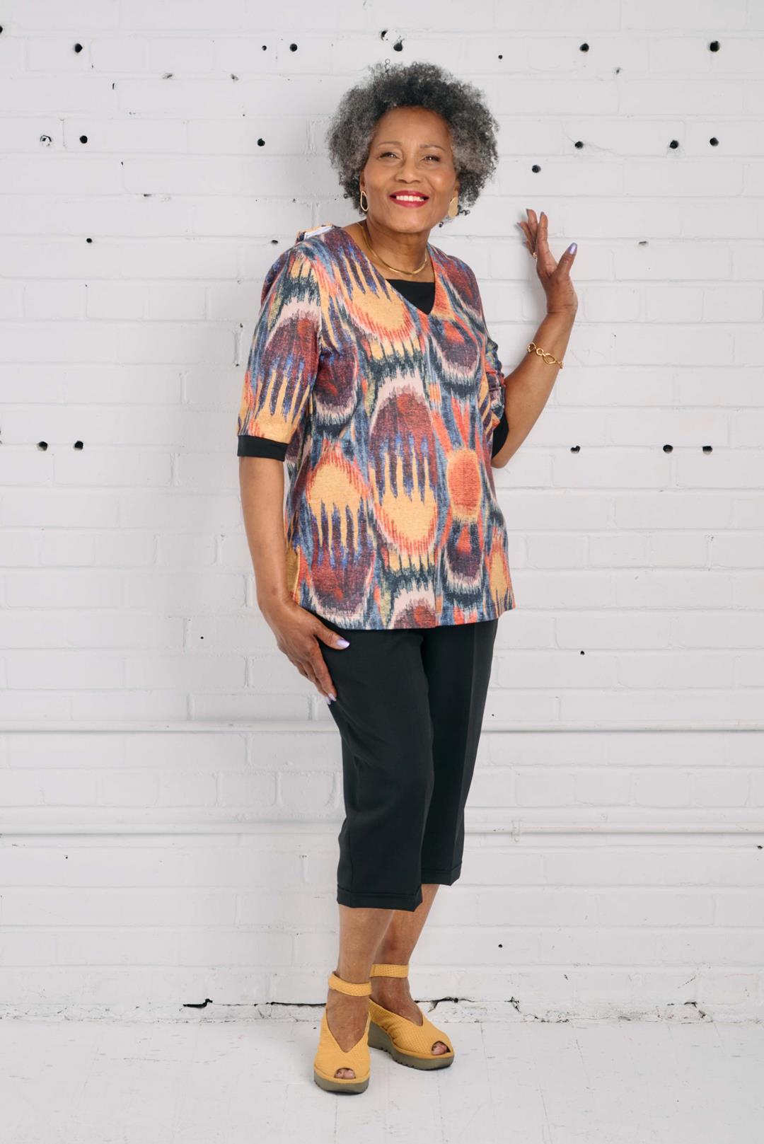 Haut adapté avec un flatteur col en V et un design superposé qui ajoute un intérêt visuel à n’importe quelle tenue. Confectionnée dans un tissu éclatant, cette pièce peut être portée toute l’année. Conçu avec soin avec des caractéristiques spéciales pour les personnes en milieu de soins de longue durée nécessitant une aide pour s’habiller quotidiennement. Le manches 3/4 L’option offre une couverture confortable tout en maintenant la facilité de mouvement et l’accès aux soins. Un incontournable pratique et stylé pour toute garde-robe.  Mélange polyester et spandex.
