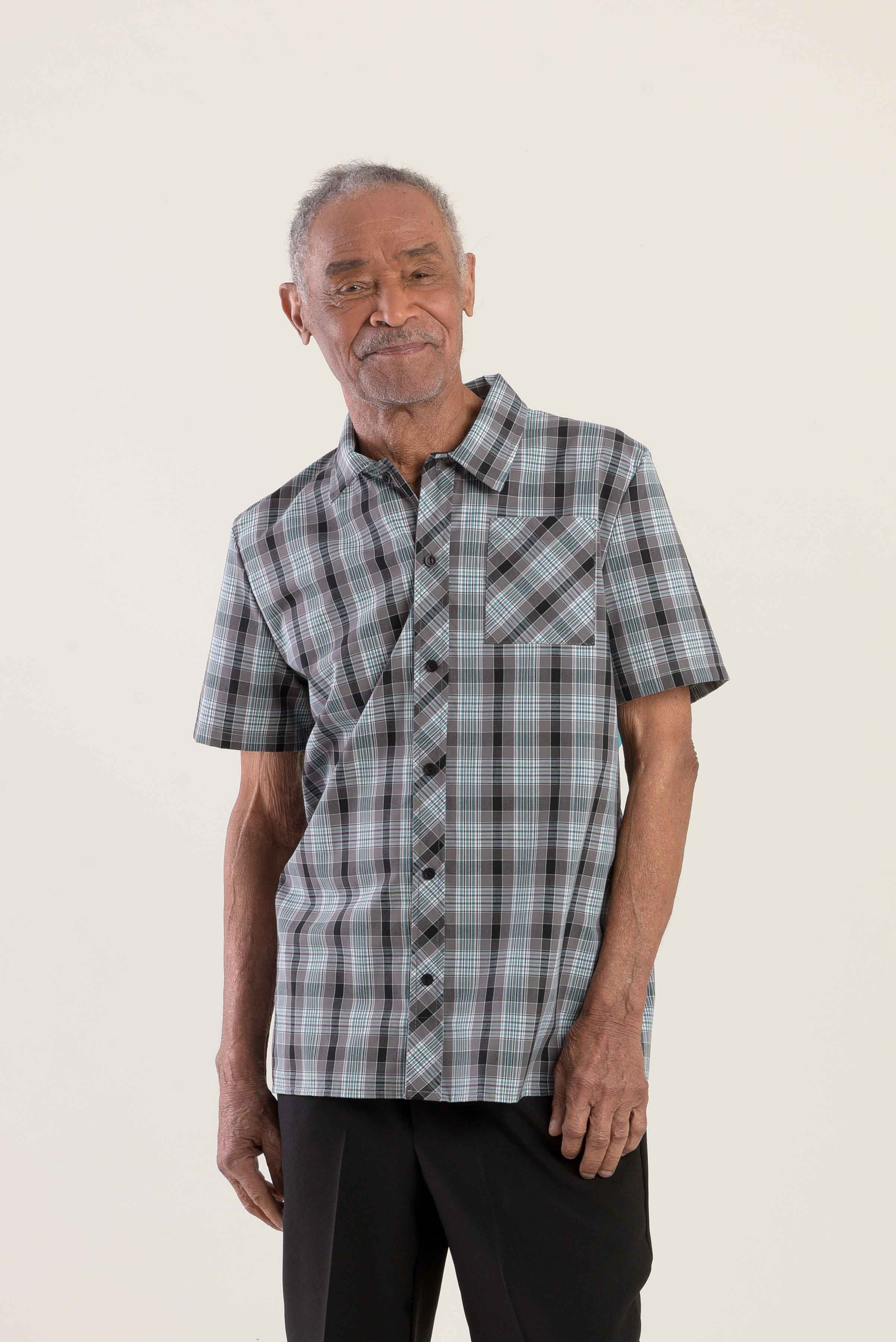 Démarquez-vous avec style avec notre chemise! Confectionnée dans un tissu léger, cette chemise a des manches courtes et un motif à carreaux tendance. Parfait pour toutes les occasions, il allie sans effort confort et mode. Ce vêtement est conçu pour les personnes en perte d’autonomie due à des maladies dégénératives telles que Parkinson et Alzheimer. Mélange de polyester et de coton.