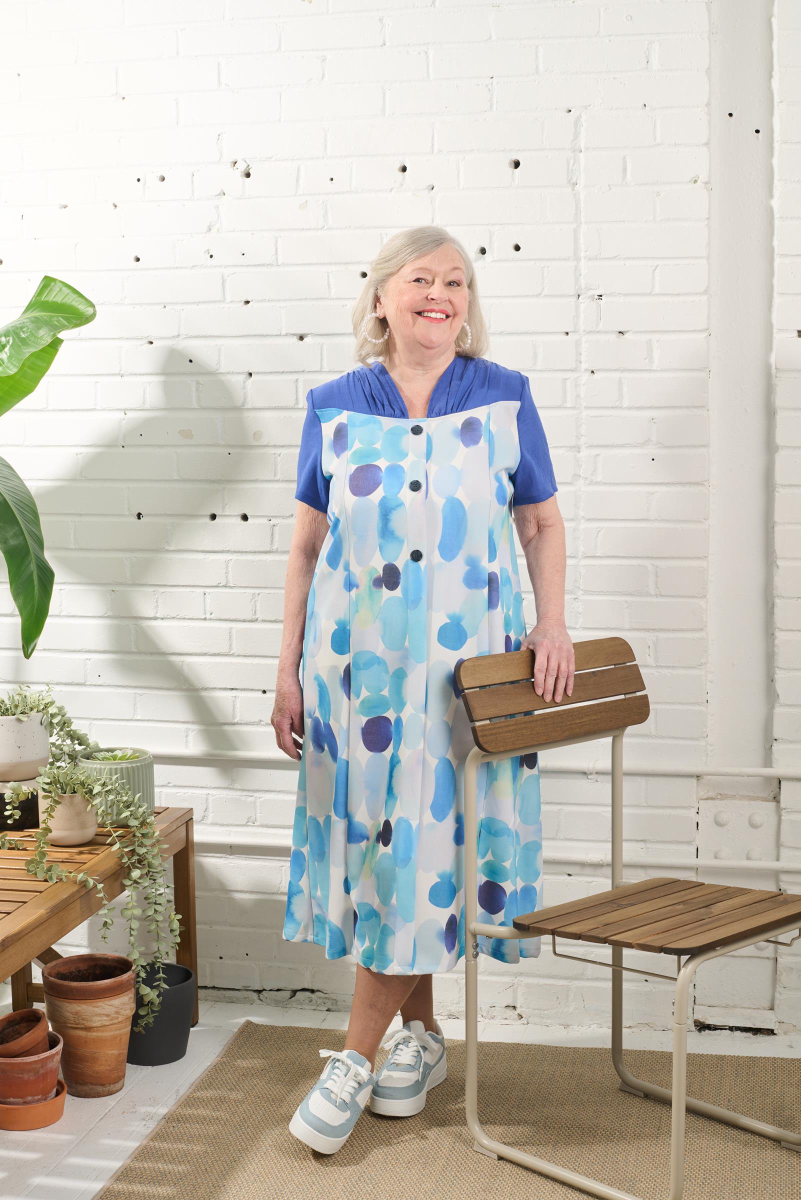 Cette robe adaptée est dotée de manches courtes et un joli détail de fronces aux épaules pour ajouter du charme. L’imprimé à pois ludique et la découpe ajoutent une touche de style moderne. Le faux boutonnage donne l’apparence d’un vêtement traditionnel. Restez à l’aise et chic toute la journée. Ce produit est conçu pour les personnes à mobilité réduite. Ce vêtement peut être enfilé sans quitter votre lit ou votre fauteuil roulant. Mélange de polyester et d’élasthanne.