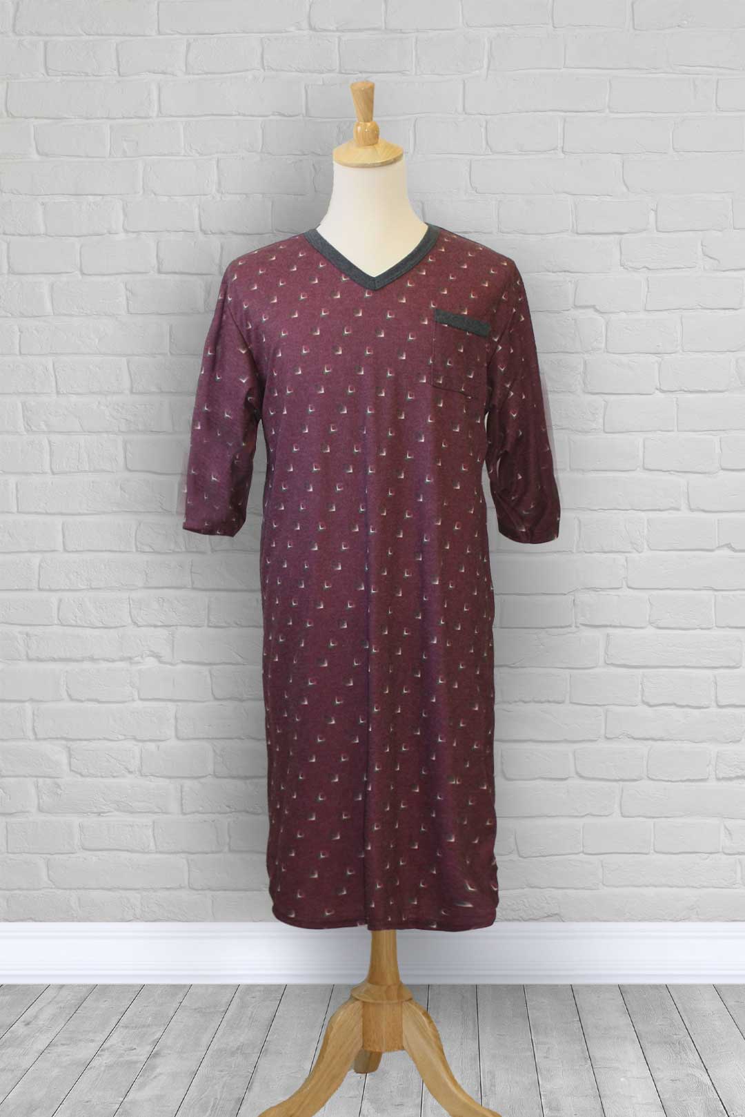 Faites l’expérience d’un confort ultime avec notre chemise de nuit pour homme. Confectionnée en tricot doux, cette chemise de nuit à col en V est ornée d’un joli imprimé. Transformez votre routine du coucher et offrez-vous un sommeil réparateur avec notre chemise de nuit haut de gamme. Son design ressemble à celui d’une blouse d’hôpital.  Les grandes ouvertures arrière permettent d’enfiler le vêtement sans lever les bras ni se tordre, assurant le confort du patient et facilitant le travail du personnel soignant. 65% polyester et 35% coton.