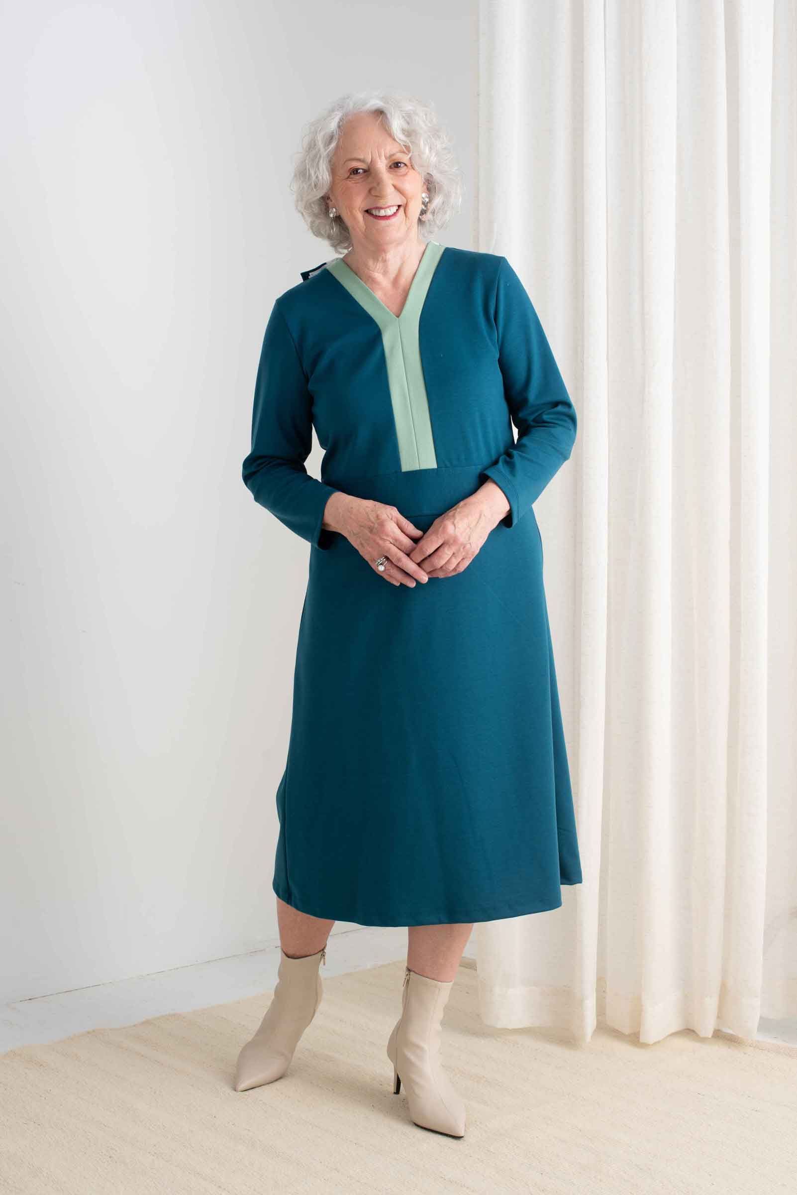 This classic long-sleeved dress features a combo neckline. Its solid color and simple design are perfect for ladies who prefer a more understated, sophisticated look. Stay stylish and cozy in this adaptive dress. This product is designed for people with reduced mobility. You can wear it without leaving your bed or wheelchair. Polyester, rayon, and spandex blend.